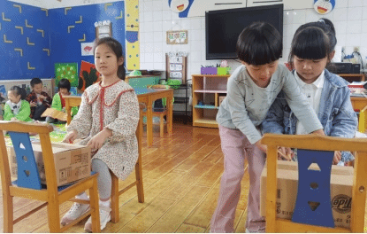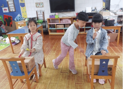 表演区最近在孩子们的建议下,把原本在美术区当作摆台的小纸箱拿来当小鼓用了,她们对新投入的材料有着相当高的兴趣,总会在第一时间去选用新材料。在材料的使用方面,也会按照自己的已有经验,有着最简单的玩法。全宏苏是土家族的娃娃,在家庭氛围的影响下,她平时会哼着山歌入园,一有时间便会教大家唱山歌,节奏感也比较强。