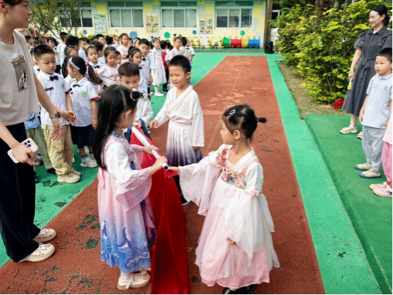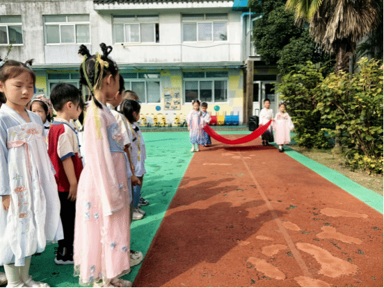 在国庆节来临之前,我们大一班的小朋友开展了一场穿汉服,我为祖国妈妈庆祝生日的升旗仪式,小朋友们穿上了自己喜欢的汉服,站在操场上都显得格外神气!