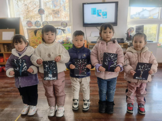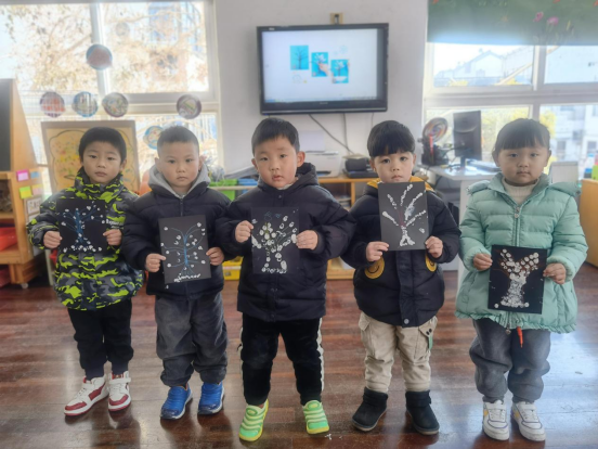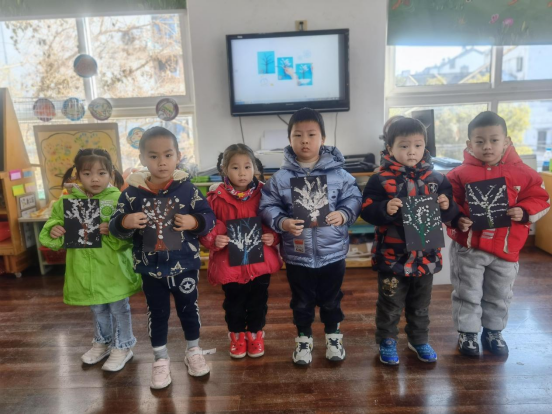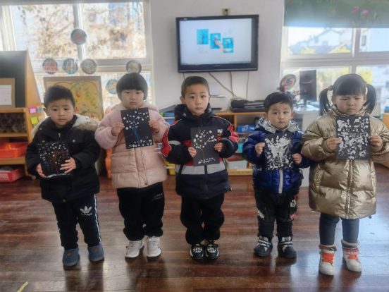 冬天是什么样的呢?我和小朋友一起说说:冬天非常冷的,小动物都不敢出门;冬天小朋友都穿的很多;冬天的景色不好看,光秃秃的,不对,冬天会下雪;在小朋友争论的时候,老师给我们看了北方的冬天是什么样的,原来是白白的一片,屋顶上,树上都是雪,原来冬天的树是白色的,今天我们也画了冬天的树,看看我们画的好看......
